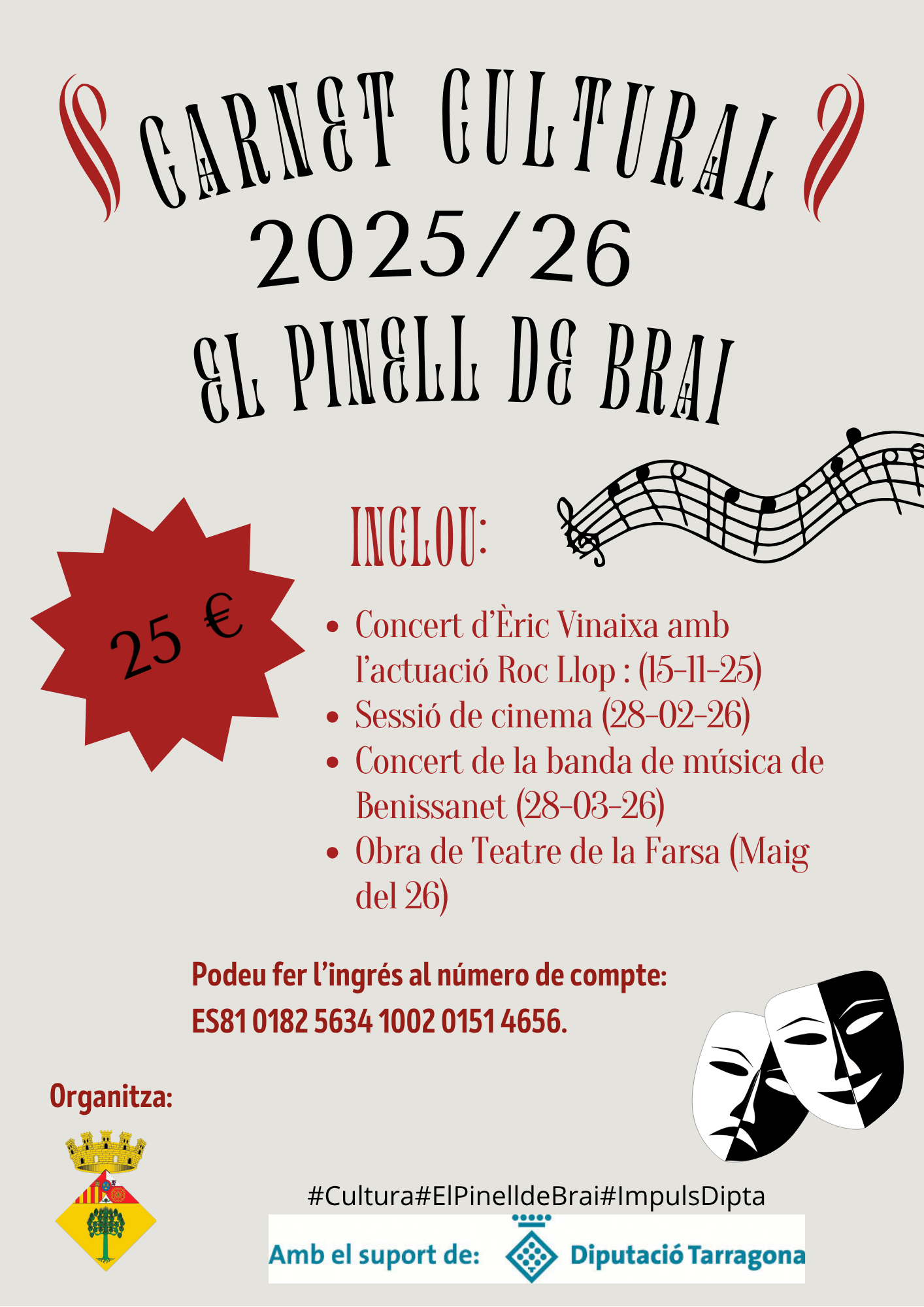 Per a l'any 2025, la Diputació de Tarragona finança a l'Ajuntament del Pinell de Brai el programa de cultura, amb un import de 10.609,86 euros, destinat a les despeses d'activitats de caràcter lúdic, cultural, tradicional, musical, teatral i esportiu.